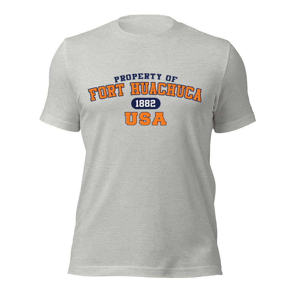 Crafted on a softstyle shirt, this piece combines a vintage athletic look with unbeatable comfort. The bold “Property of Fort Huachuca USA” design, accented with the founding year, is printed in striking colors, giving it that authentic collegiate feel.